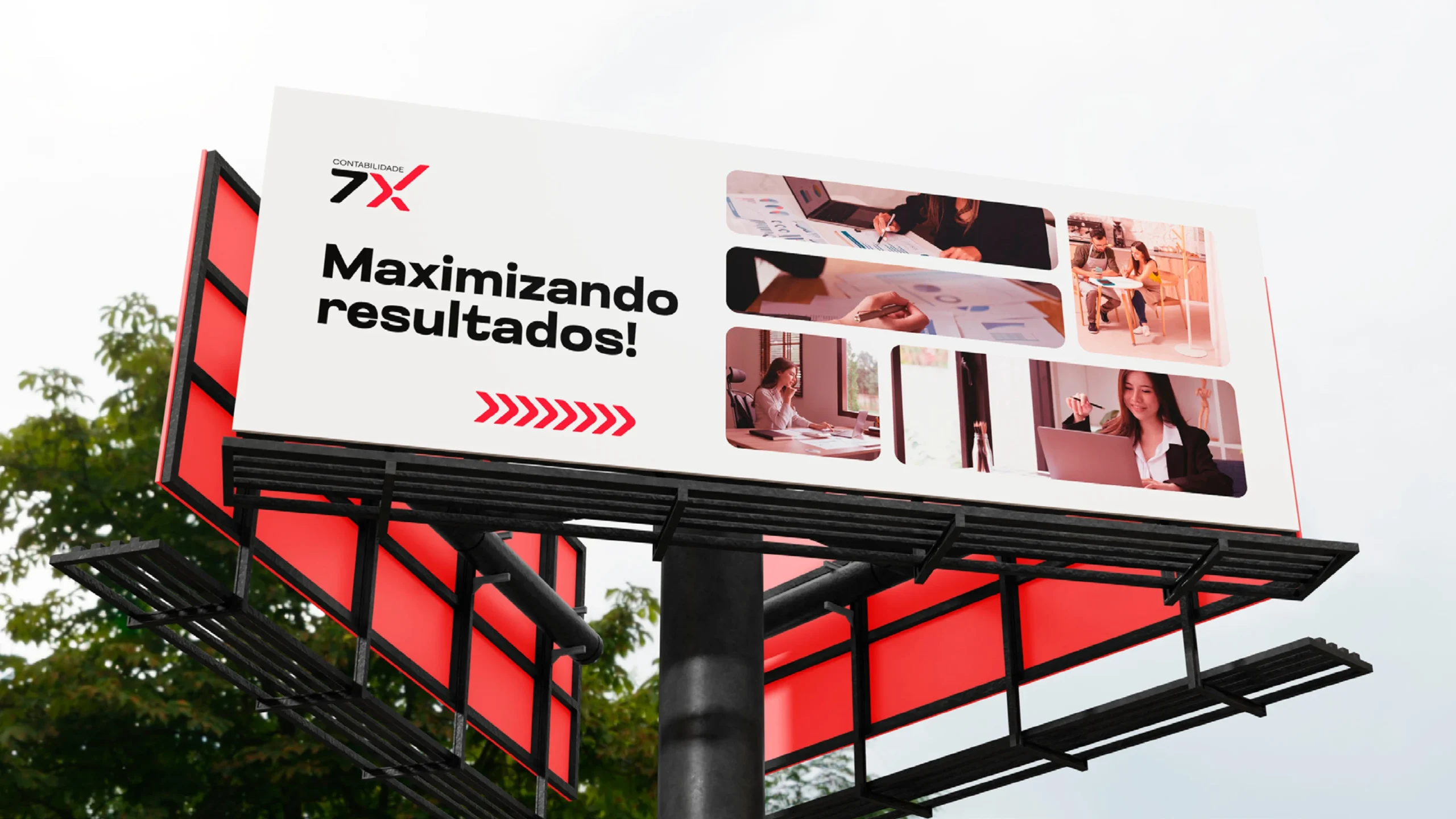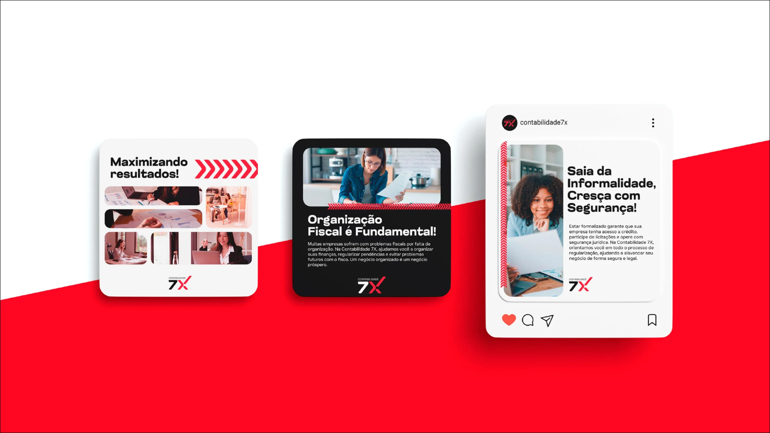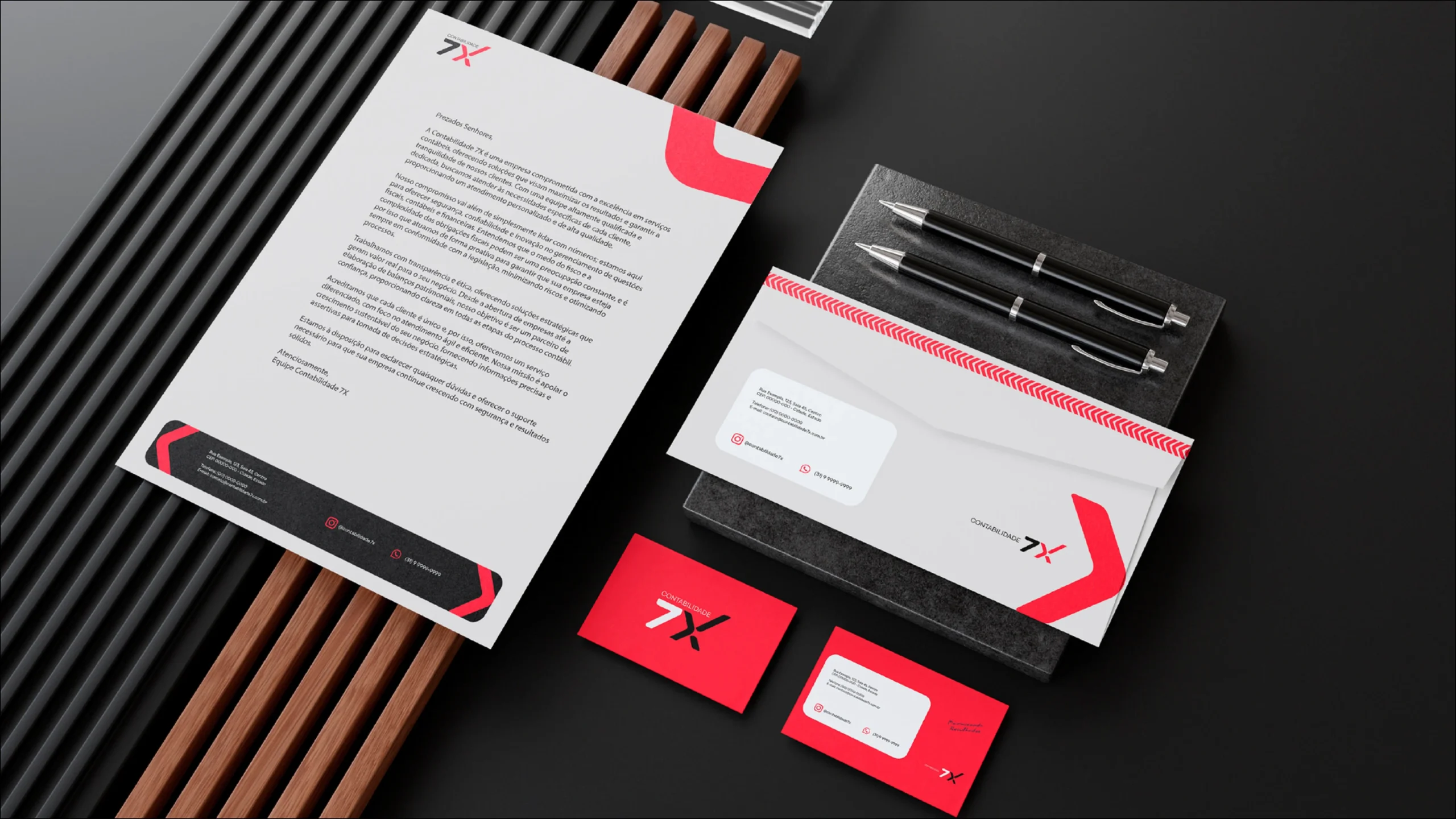 O projeto de identidade visual da Contabilidade 7X foi desenvolvido para reforçar os pilares de confiança, eficiência e precisão da marca. Partindo de um redesign completo do logotipo, a tipografia escolhida equilibra robustez e modernidade, com o “7X” como elemento central, destacando-se pela sua estrutura forte e linhas dinâmicas. O nome “Contabilidade”, posicionado acima em um estilo mais leve, complementa a composição, criando uma hierarquia visual clara e impactante.